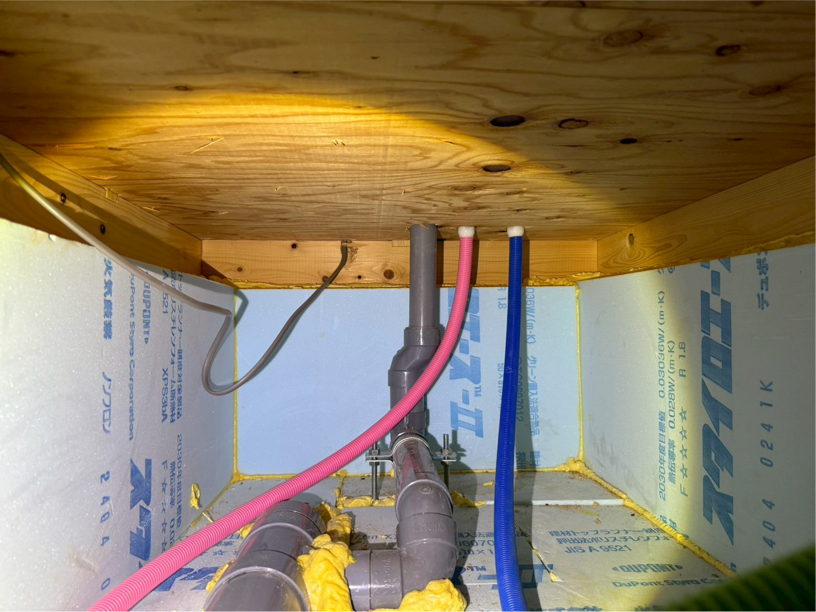 今回の点検で特に印象的だったのが、先輩の徹底した確認作業です。 現場監督である先輩は、迷うことなく床下の点検口へと潜り込み、普段は見えない基礎の隅々までチェックを行いました。