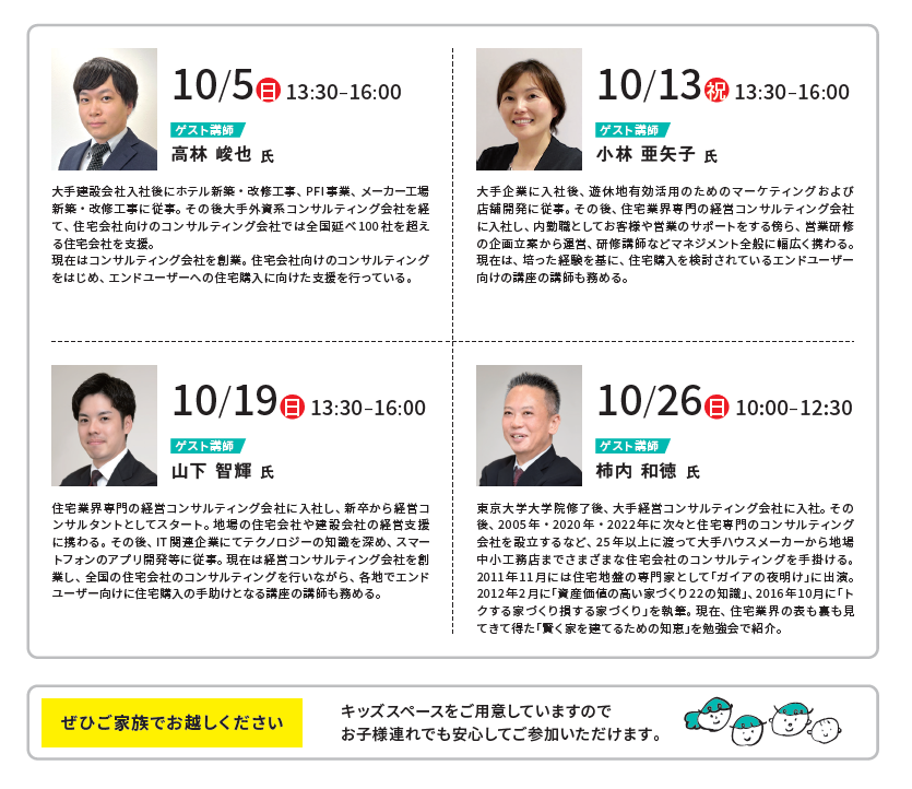 住宅の専門家として「良い住宅会社の選び方」を中立的な立場で解説するゲスト講師と、