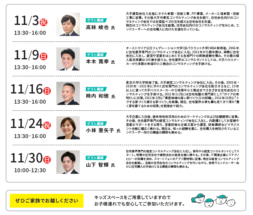 地域の家づくりを一番よく知る現場のプロである地元講師のコラボ体制で開催するから安心なんです。