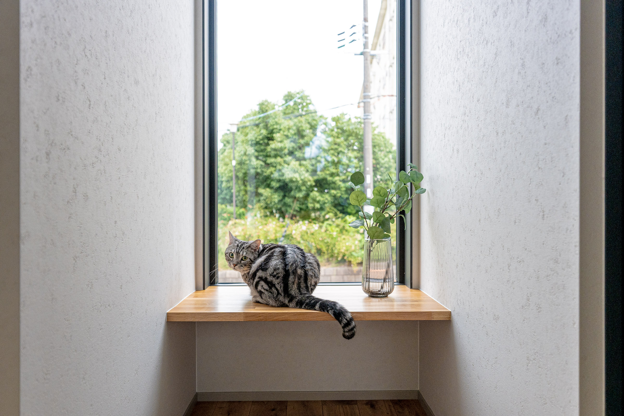 「室内から、レンガの外構が見える家にしたい」。 LDKに地窓を設け、 その向こうにレンガの壁がある小径をつくることで要望は実現しました。 そして、お引き渡しの日、こっそりつくり込んでいたのが、 屋外用プロジェクターでお子様の大好きなキャラクターをレンガの壁に投影するサプライズでした。 「当日はまさに感動の渦…。忘れられない家づくりとなりました」